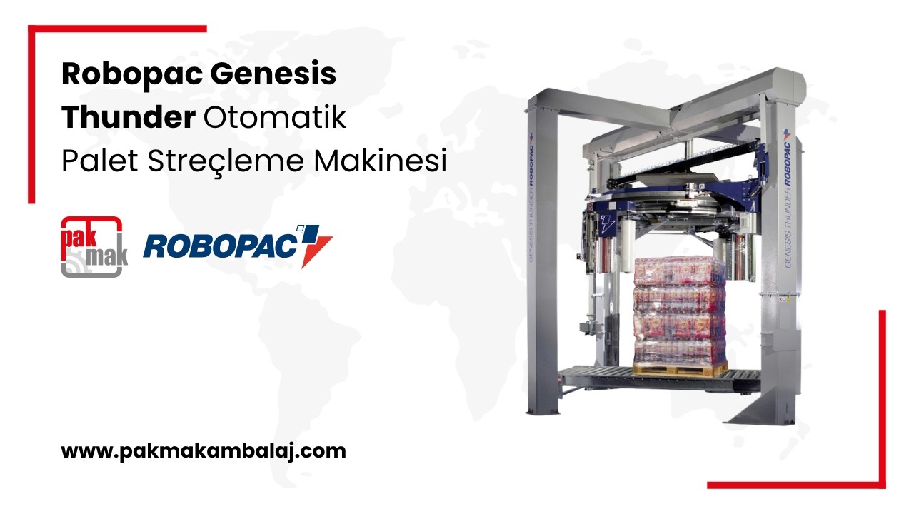 Robopac Genesis Thunder Otomatik Palet Streçleme Makinesi, üretim hatlarınızda maksimum hız, güvenlik ve tasarrufu aynı anda sunar.
