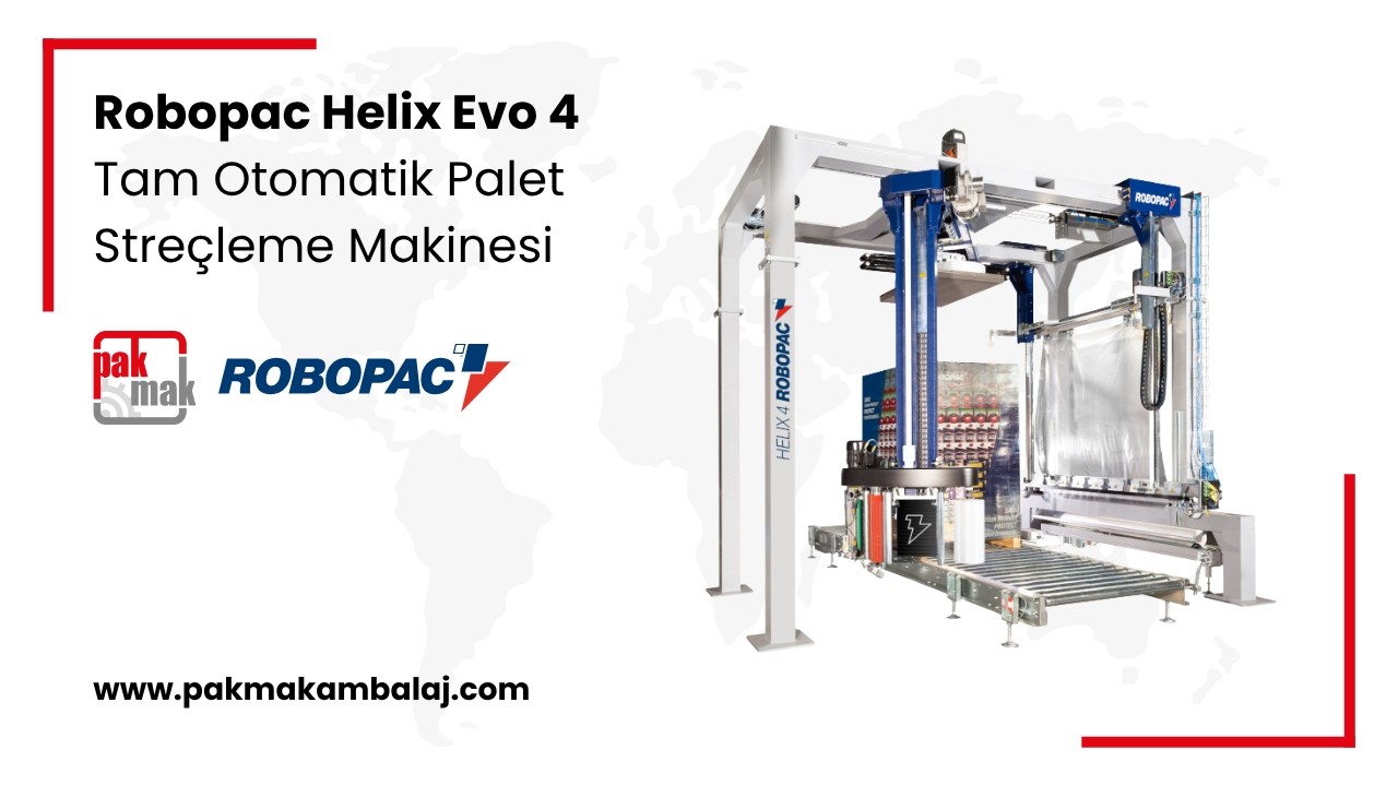 Robopac Helix Evo 4, yüksek hız, enerji verimliliği ve film tasarrufu kombinasyonunu sunan endüstriyel seviye bir otomatik streçleme çözümüdür.